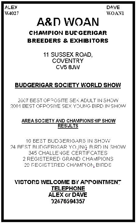 OF QUALITY BUDGERIGARS